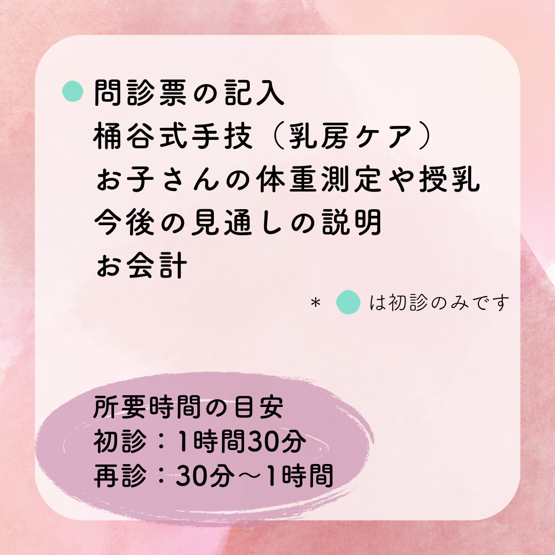上のお子さんとの来院やおばあちゃんの付き添いも可能ですが、少人数でお願いします
