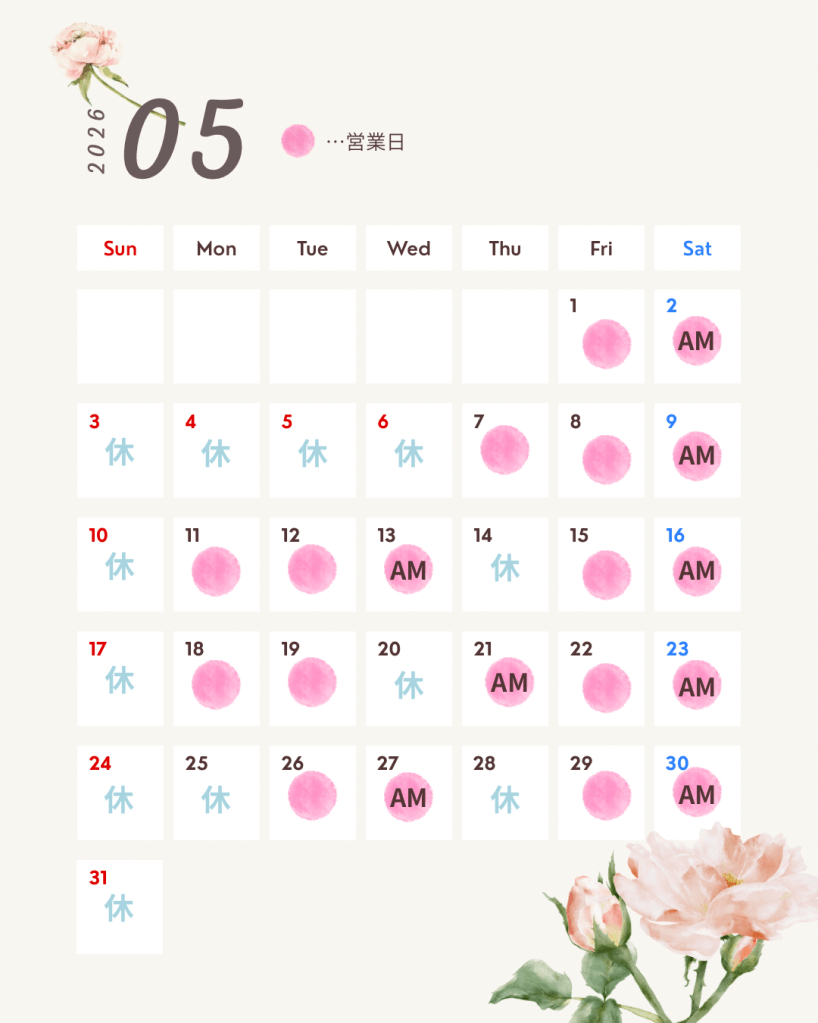 さて、5月の営業案内です。